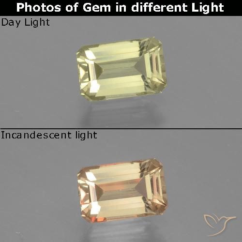 0.97캐럿 천연 연노랑 색상 변화 디아스포어, 옥타곤 / 에메랄드 컷, VS