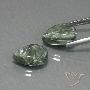 10.07캐럿의 천연 미디엄 그린 자수정 세라피나이트, 배 모양 모양이 2개이고 정확한 크기는 13.96 x 9.90 x 5.18 mm입니다. 이 낱개 자수정 보석은 러시아에서 채굴되었으며 투명도는 Opaque. 이 천연 세라피나이트 보석은 처리되지 않았습니다.